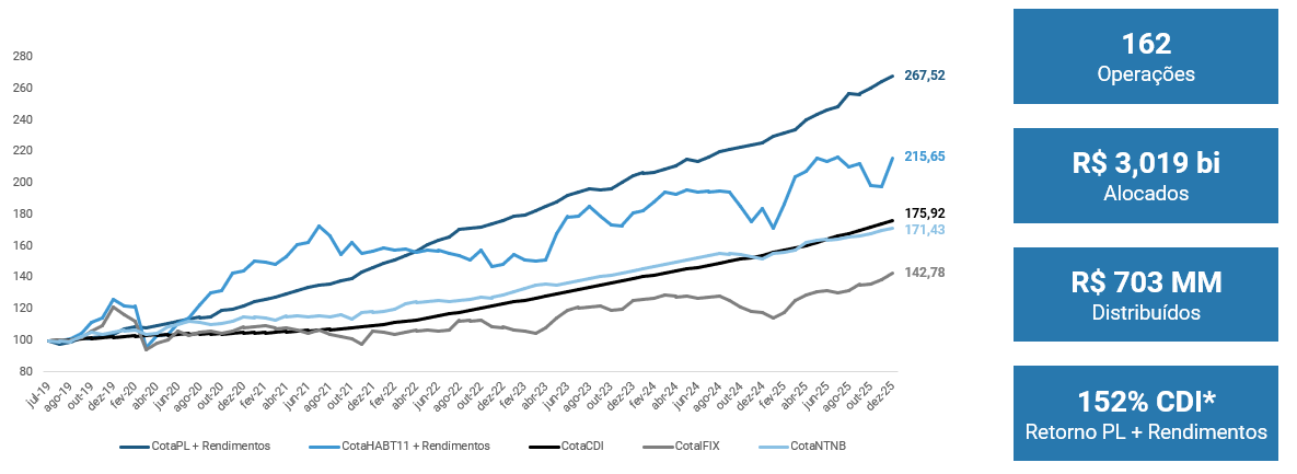 A EXPECTATIVA DE DISTRIBUIÇÃO DE RENDIMENTOS NÃO REPRESENTA E NEM DEVE SER CONSIDERADA, A QUALQUER MOMENTO OU SOB QUALQUER HIPÓTESE, COMO PROMESSA, GARANTIA OU SUGESTÃO DE RENTABILIDADE FUTURA OU DE ISENÇÃO DE RISCOS AOS COTISTAS. AS INFORMAÇÕES PRESENTES NESTE MATERIAL PUBLICITÁRIO SÃO BASEADAS EM SIMULAÇÕES E OS RESULTADOS REAIS PODERÃO SER SIGNIFICATIVAMENTE DIFERENTES